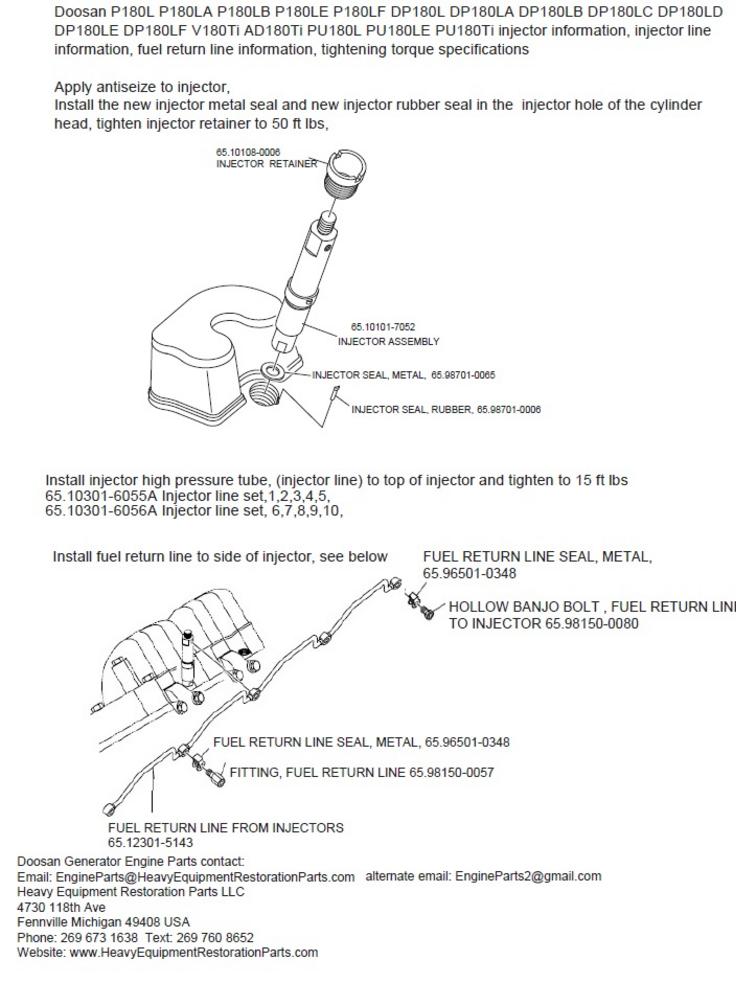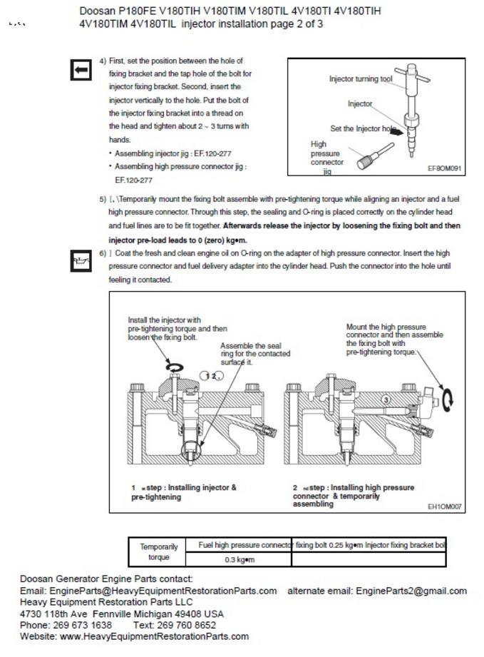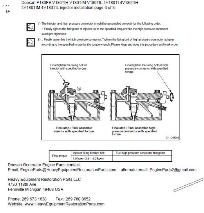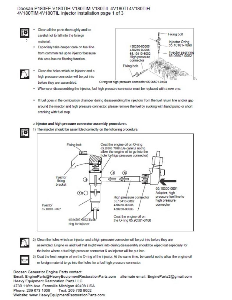 Doosan V10 18.273L injector installation information